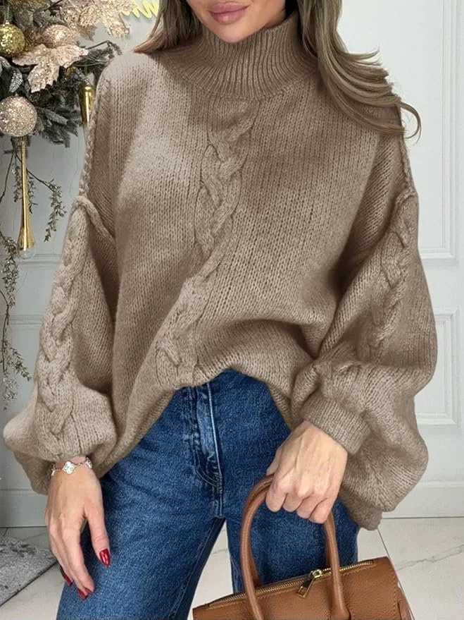 This chunky cable knit sweater is soft, cozy, and perfect for fall through early winter, with an oversized fit and stylish balloon sleeves that give it a modern look.