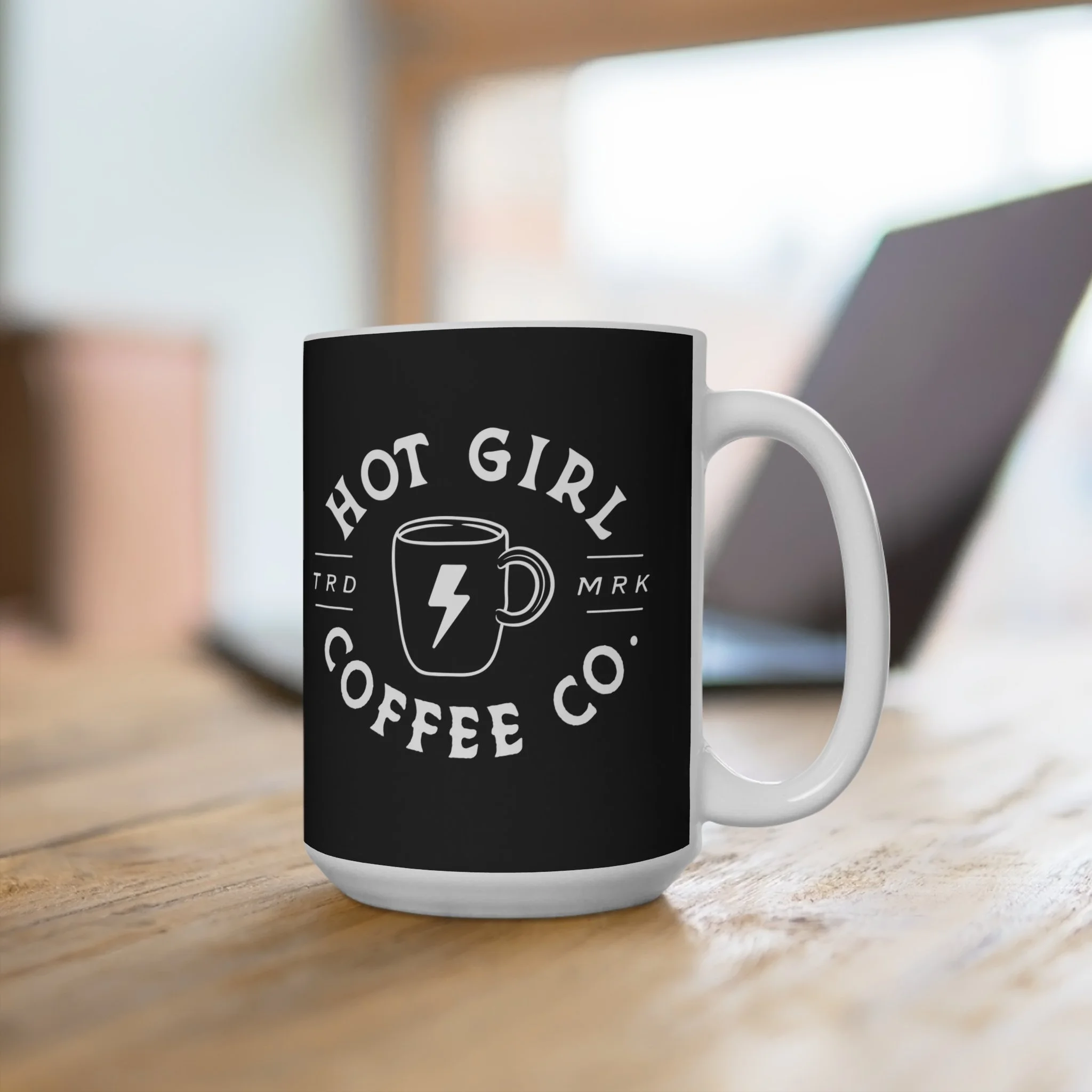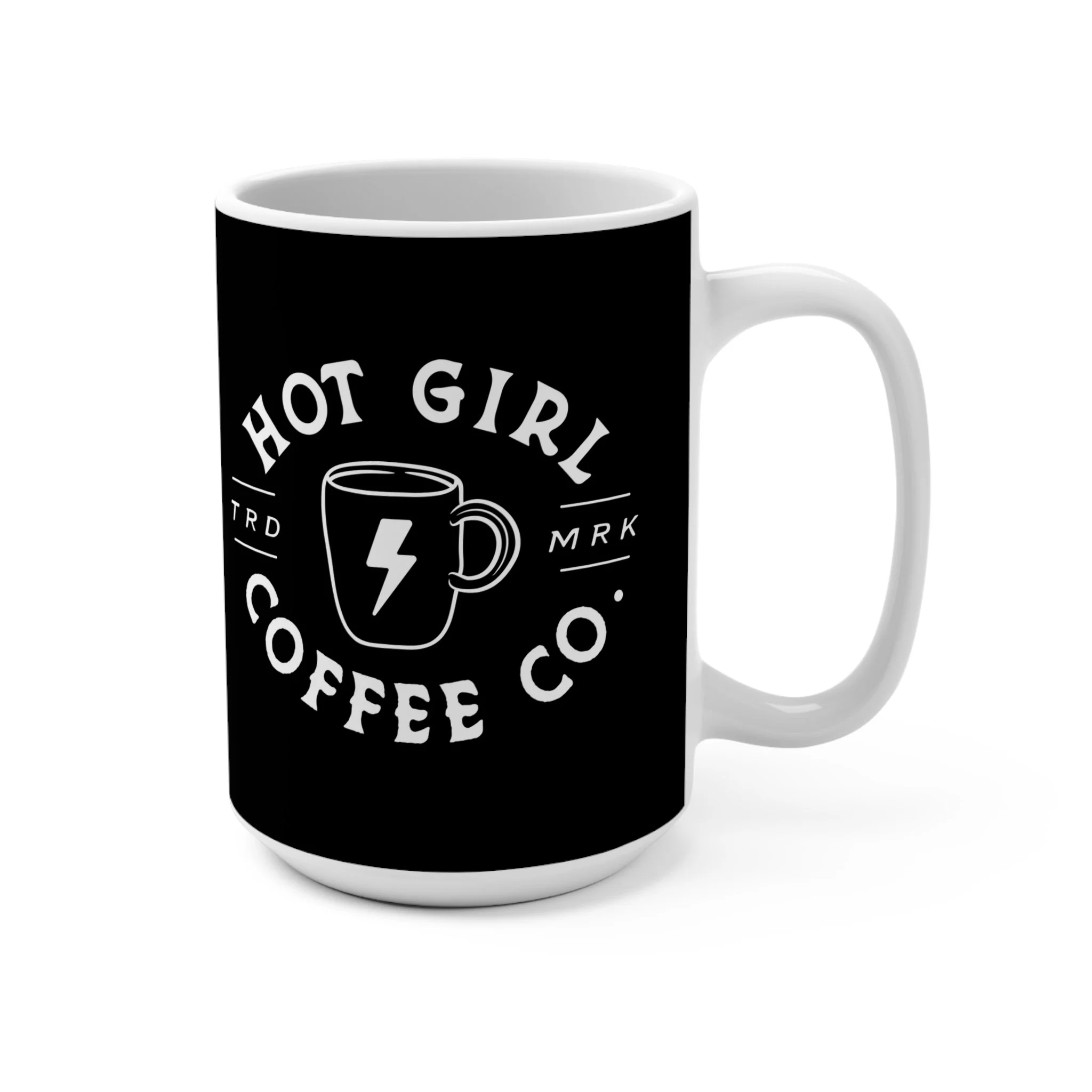 Black ceramic mug stamped with a bold, vintage coffee logo that reads “Hot Girl Coffee Co.”. Heavy and substantial in the hand, its deep 15oz capacity holds an extra-large morning brew or a slow-afternoon refill. The high-contrast white-on-black design reads like a favorite tattoo — confident, cheeky, and unapologetically caffeinated. It sits on a kitchen shelf among plants and enamelware, or on a cluttered desk as the quiet badge of someone who runs on espresso and attitude. Morning rituals feel sharper; breaks feel charged. Use it when you need a little lift, to mark ritual coffee moments, or to bring personality to your daily routine.
